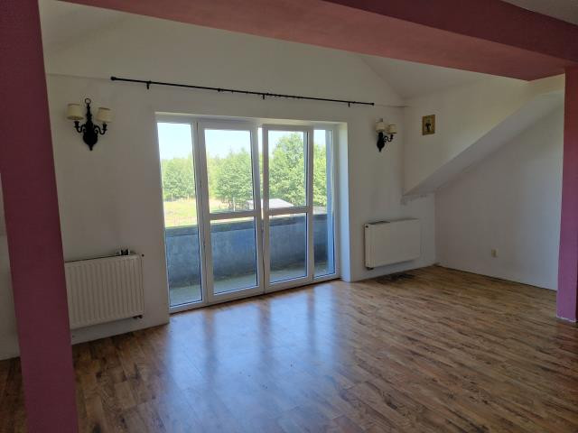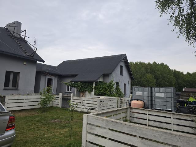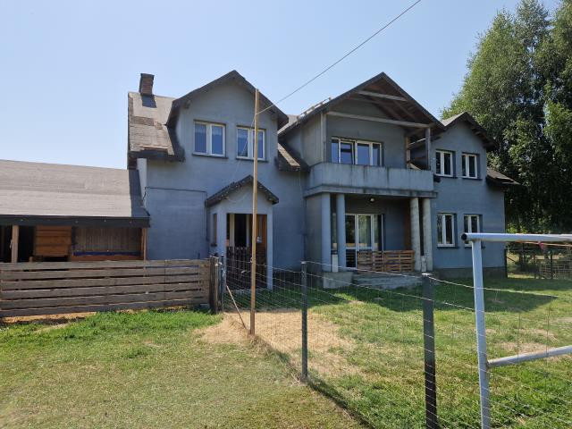 Przedmiotem sprzedaży jest dom o powierzchni 300 m2 składający sie z parter:kuchnia pow 19 m2 , jadalnia 18 m2 , salon 40 m2 , 2x po pokój 14 m2, łazienka 13 m2 hol 16 m2 i wiatrołap 3,5 m2 . Piętro: salon 25 m2 , sypialnia 10 m2 , II sypialnia 15 m2 , III sypialnia 12 m2 , IV sypialnia 16 m2, V sypialnia 15 m2 oraz łazienka 10 m2 . W pokojach na podłodze położone panele, w łazience glazura terakota , okna pcv , woda własna, szambo centralne ogrzewanie węglowe. Dom murowany z suporexu ocieplony styropianem otynkowany ( bez koloru ) Dach ocieplony wełną mineralna deski do czoła i pokryty dwa razy papą. Dodatkowo część tego budynku stanowi samodzielne mieszkanie dwupoziomowe z osobnym wejściem. Na tej samej posesji jest postawiony drugi budynek o pow 100 m2 w stanie surowym zamkniętym. Działka