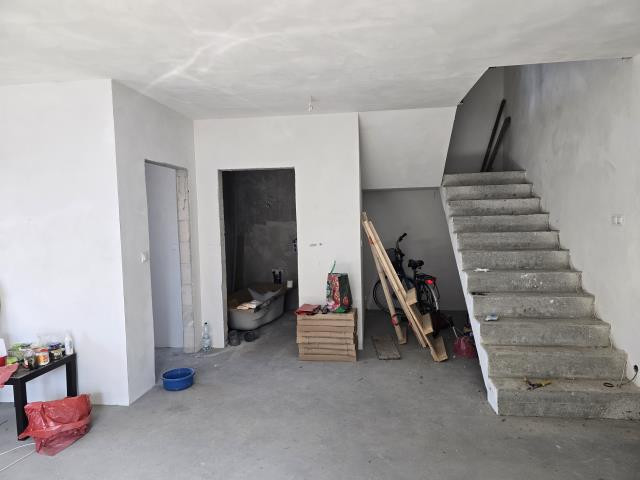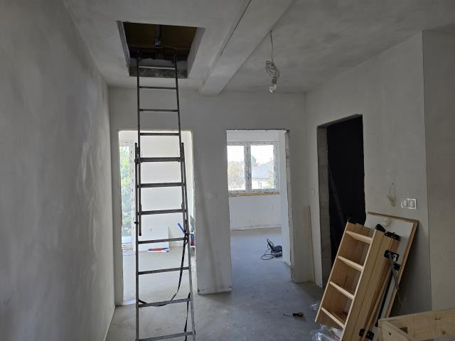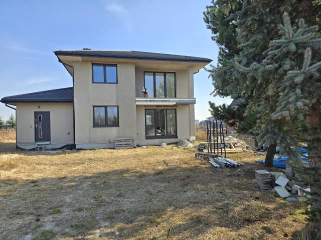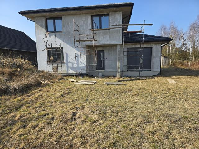 Dom w stanie developerskim budowany nie przez developera lecz dla własnych potrzeb ale zmieniły się plany życiowe stąd jest na sprzedaż. Okna 3 - szybowe w kolorze grafitowym . instalacji prądu i wodno kanalizacyjne rozprowadzone w budynku , centralne ogrzewanie na palet wraz z picem, woda własna , odpływ do zbiornika- szambo. Drzwi zewnętrzne i garażowe segmentowe .