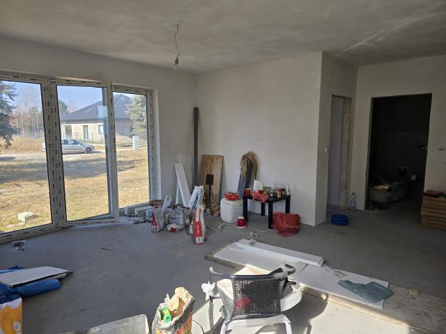 Dom budowany dla własnych potrzeb ale zmieniły się plany życiowe stąd jest na sprzedaż. Okna 3 - szybowe w kolorze grafitowym . instalacji prądu i wodno kanalizacyjne rozprowadzone w budynku , centralne ogrzewanie na palet wraz z picem, woda własna , odpływ do zbiornika- szambo. Drzwi zewnętrzne i garażowe segmentowe .