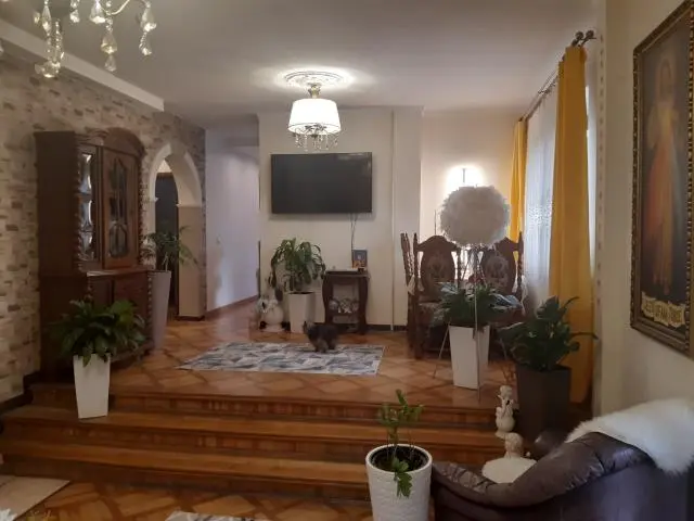 Przedmiotem sprzedaży jest dom o powierzchni 200 m2 W skład domu wchodzi wiatrołap, w którym znajduje się pojemna szafa wnękowa. Przestronny salon o pow 45 m2 z wyjściem na taras zachęca do spędzenia czasu przy grillu bądź dobrej książce i kawie na tarasie. W salonie zamontowany jest kominek, który w chłodne, jesienne wieczory umili czas domownikom stwarzając niepowtarzalny klimat. Kolejnym pomieszczeniem jest duża kuchnia wyposażona we wszystkie sprzęty AGD .W łazience oraz WC zamontowana jest dobrej jakości armatura Oprócz tego mieszkanie posiada również jeden pokój. Na pierwszym piętrze znajdują sie 3 sypialnie , garderoba i duża łazienka Wszędzie dominują nowoczesne odcienie szarości i bieli. Położenie względem stron świata sprawia, że mieszkanie jest nasłonecznione i jasne.
